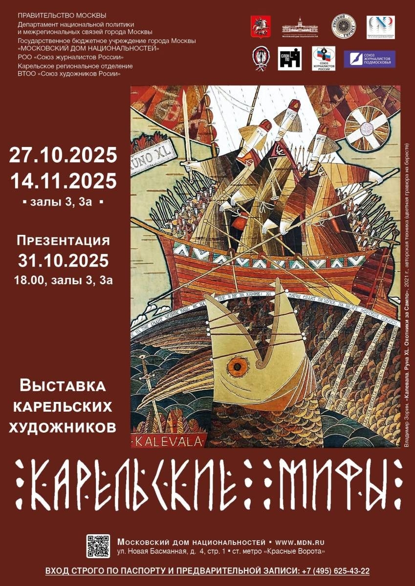 С 27 октября по 14 ноября 2025 года в Московском доме национальностей пройдет выставка «Карельские мифы», организованная Карельским региональным отделением ВТОО «Союз художников России» и журналом «Русский турист» – возрожденным изданием XIX века о походах и путешествиях.