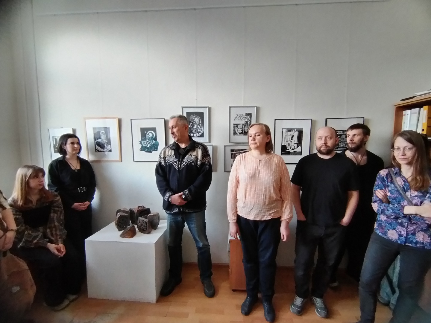 Что нового в Союзе? Открыли молодёжную выставку СТУДЕНЧЕСТВО. Это уже вторая выставка в стенах Карельского отделения Союза художников России. Похоже, такая выставка становится традицией, в планах на следующий год уже стоит следующая выставка студенческих работ. Произведения графики и керамики представили 33 автора из Университета и Колежда культуры и искусства. С приветственным словом на открытии выступили председатель Карельского отделения Союза художников Владимир Зорин и Председатель Союза архитекторов Карелии Евгений Фролов.